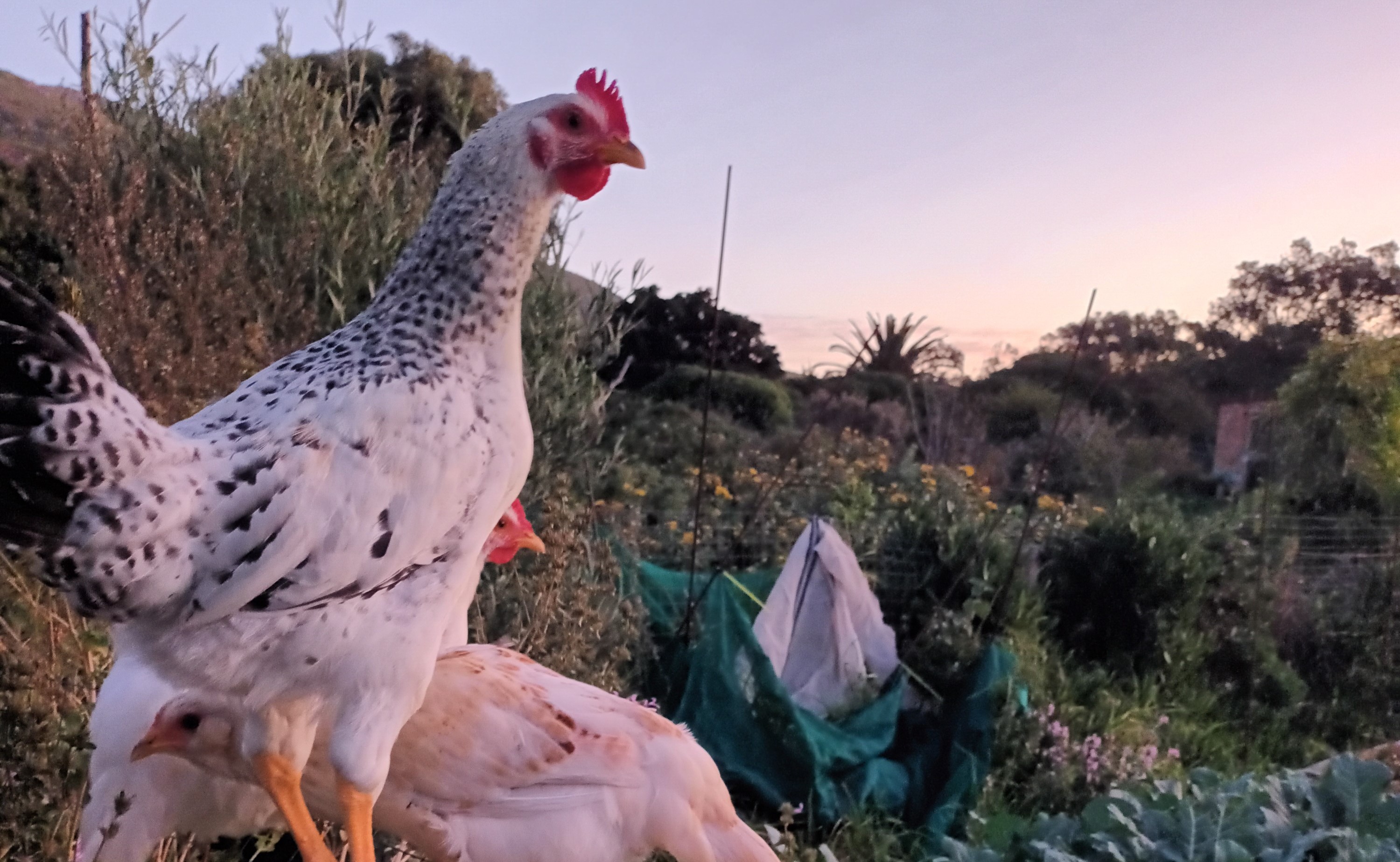 Finding a way to feed our chickens sustainably was complex. It is difficult to figure out what is in commercial layer feed in South Africa. We know it typically involves a lot of processing, large monocrops, and sometimes fishmeal.